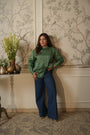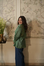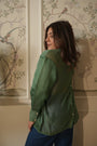 The Rida shirt is a statement in understated elegance, created in rich teal chanderi,combining subtle woven stripe with solid panels for depth & texture. A soft bedazzle comes through detlicate silver mental sequins, leading just the right hint of shimmer. With its relaxed form and reversable styling option, the rida shirt moves seamlessly between versatility and character.